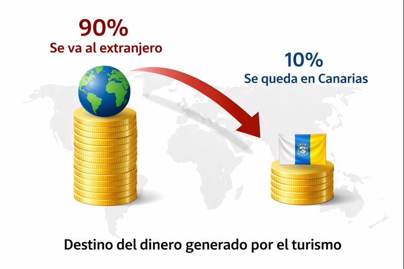 Canarias recibe más de 16 millones de turistas al año. Esa presión no se refleja en mejores salarios ni en mejores servicios públicos, pero sí en más basura, más consumo de agua, más carreteras saturadas y más viviendas convertidas en alojamientos turísticos. El modelo actual privatiza los beneficios y socializa los costes.